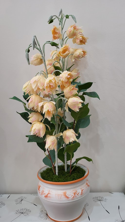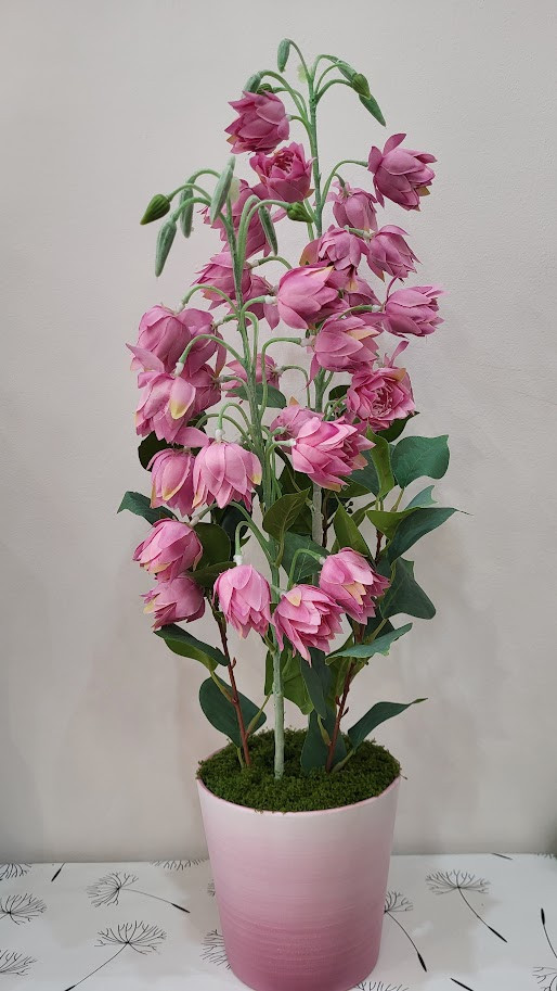 A Dekor-virágműhelyben hiszünk abban, hogy az édesanyák a legszebb virágokat érdemlik – olyat, ami sosem veszít a fényéből. Ez a szálas, felfelé törekvő harangvirág-dísz igazi látványelem: kecses formája és finom pasztell színei azonnal központi díszévé válnak bármely otthonnak.
